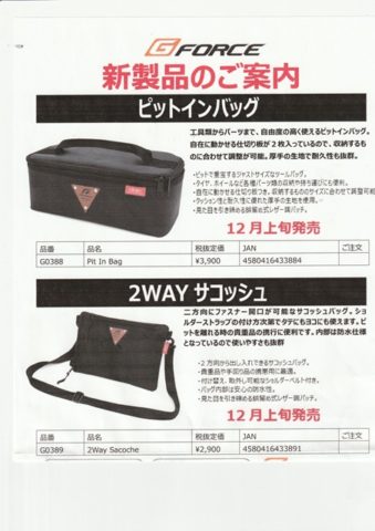 12月上旬にGフォースさんからバック系の新製品が2点発売されます