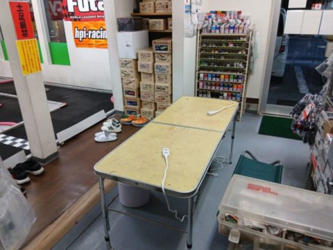 とりあえず臨時のピットスペースを店内に設営w