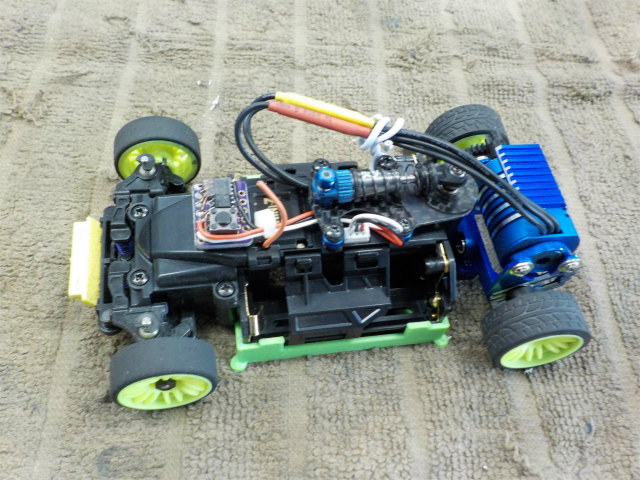 ハイサイドでコケてしまいます。当店のコースは基本シャーシ裏にウエイトを貼るのは