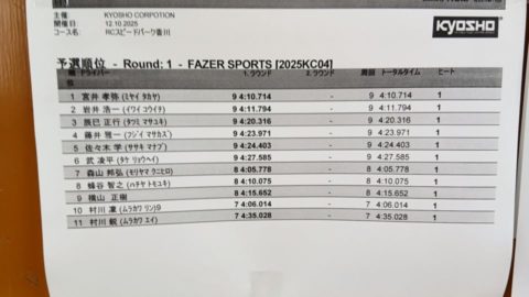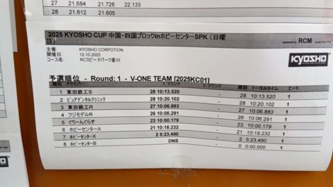 先日の京商カップ中四国大会ですが、予選の暫定順位で終わったのは残念です