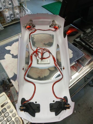 電源も受信機からではなく、リポ3,7Vが使えるようしたのでボデイー天井に接着